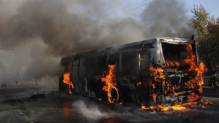 "Luego efectúa una maniobra para intentar esquivar las barricadas que había en el lugar, pero el bus queda atravesado en la calzada, llegando nuevamente los encapuchados, quienes, premunidos con elementos contundentes, le solicitaron descender del móvil, junto con los dos pasajeros que traía el bus", añadió.