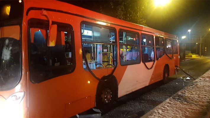 "Logran detener un bus de locomoción colectiva, el cual mantenía tres o cuatro pasajeros en el interior. Los amenazan de muerte, bajan a los pasajeros y el conductor, y proceden a romper los vidrios", señaló el capitán Andrés Mora, oficial de Ronda Prefectura Rinconada.