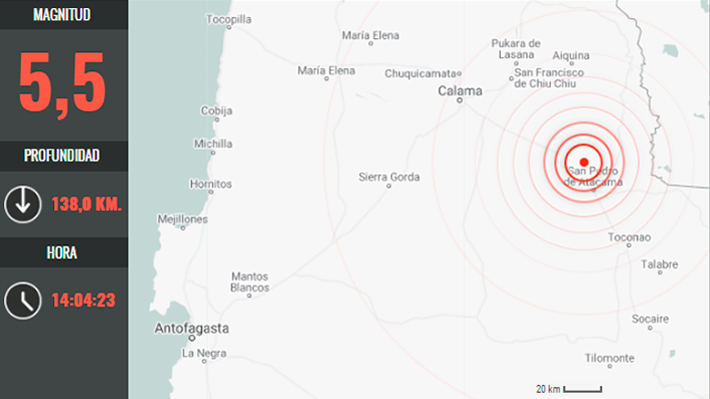 A las 14:04 horas de este domingo se percibió un sismo de mediana intensidad en la zona norte del país, provocando alerta en la población de dicha región. En especifico, el movimiento se registró a 18 km kilómetros al norte de San Pedro de Atacama, en la región de Antofagasta.