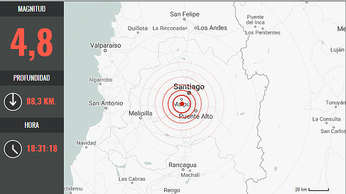Asimismo, indicó que el epicentro del sismo se ubicó a 14 kilómetros al suroeste de Santiago.
