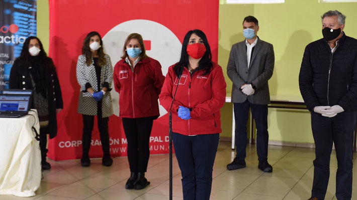 La ministra vocera de Gobierno, Karla Rubilar, visitó a voluntarias que confeccionan mascarillas sanitarias en Rancagua.