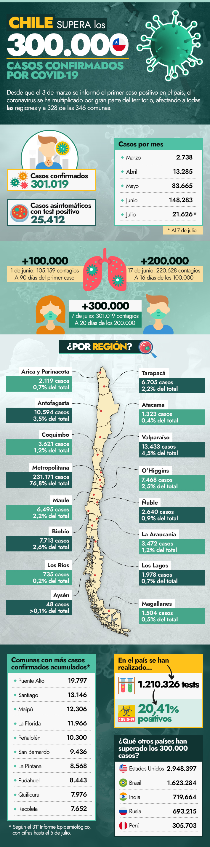 Chile supera los 300 mil casos confirmados de covid-19: Las cifras de la pandemia en el país