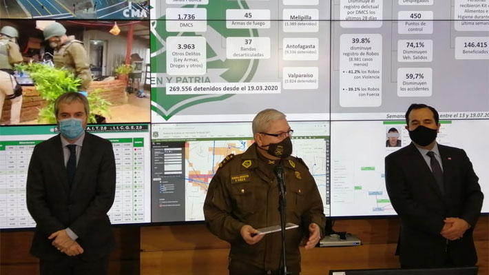 En un nuevo balance de gestión policial, el director nacional de Orden y Seguridad, general inspector Ricardo Yáñez, se refirió a los procedimientos en comunas con focos de violencia en pandemia, como también la incautación de droga.