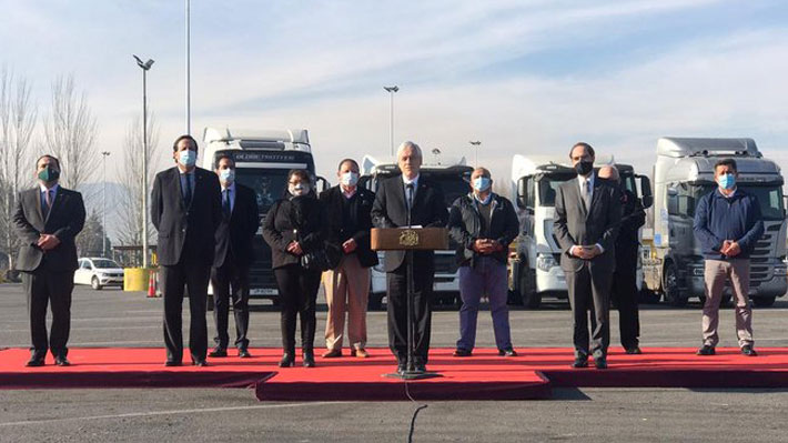 Junto a esto, Piñera les habló a los dirigentes de los camioneros: "Hemos escuchado con mucha atención su voz, por más seguridad, por más libertad, por poder vivir tranquilos, por poder recorrer Chile con libertad".