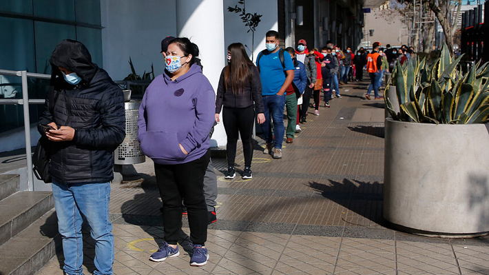 Personas a las espera de ingresar al Mall Plaza de Estación Central, comuna que está en transición.