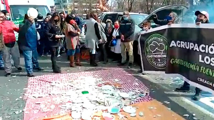 Fueron 160 platos, uno por cada día que los restaurantes, cafés y locales de comida no han podido abrir y atender público desde que la llegada del coronavirus a Chile cambió el escenario. Cada uno de esos platos fue quebrado en el piso de la calle Caupolicán, en Los Ángeles, por los propios dueños de dichos establecimientos. "No queremos pagar los platos rotos", dijeron.