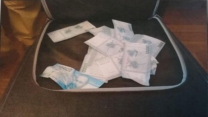 Según fijación fotográfica de la propia PDI se podían observar los $20 millones en 20 fajos de cien billetes de $10 mil cada uno.