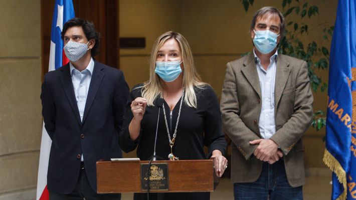 Los jefes de las bancadas de Chile Vamos, Sebastián Torrealba (RN), María José Hoffmann (UDI) y Luciano Cruz-Coke.