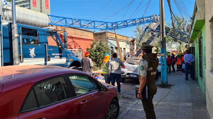 "A las 09:00 de la mañana recibimos una información, que la grúa pluma de una empresa particular que estaba trabajando en la construcción de un edificio se desplomó sobre una casa habitación. Los antecedentes que mantenemos hasta este minuto es que hay tres personas lesionadas, afortunadamente las tres están sin riesgo vital y no tenemos que lamentar víctimas fatales. Están siendo trasladados hasta el centro asistencial más cercano", indicó el teniente coronel Renato Rojas.