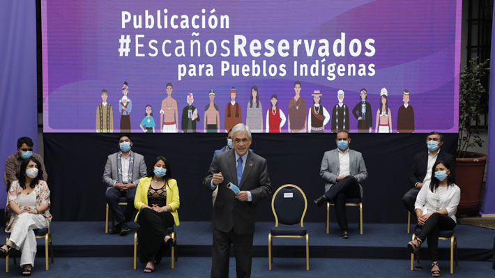 "Los 17 escaños reservados se distribuyen en 7 convencionales constituyentes para el pueblo Mapuche, 2 para el pueblo Aimara, y 1 para cada uno de los otros pueblos reconocidos en la Ley Indígena: Diaguita, Atacameño, Quechua, Chango, Colla, Rapa Nui, Yagán y Kawéskar", sostuvo Piñera.