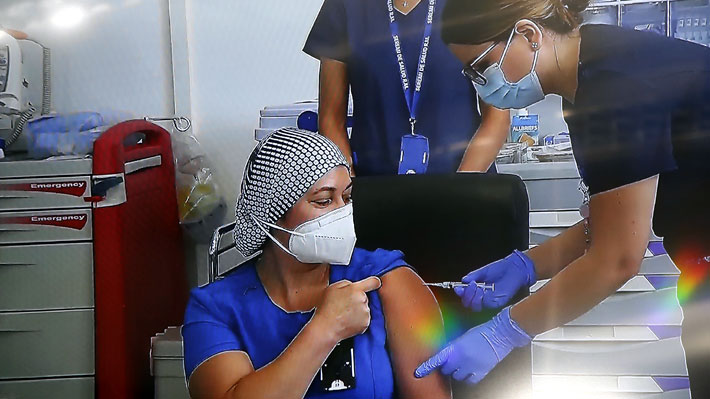 Luego fue el turno de Adriana Arias, enfermera supervisora en la UCI del Hospital Metropolitano, quien conversó con el ministro Paris y la subsecretaria Paula Daza sobre la coincidencia de la fecha: justo en la mañana de Nochebuena. "Estamos super contentos de que podamos iniciar nosotros este proceso de vacunación, es muy necesario, y concientizar a la gente de que el autocuidado debe seguir", dijo la enfermera.