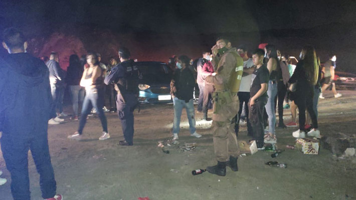en el sector de La Portada en Antofagasta, hubo 41 detenidos por una fiesta clandestina en plena playa.