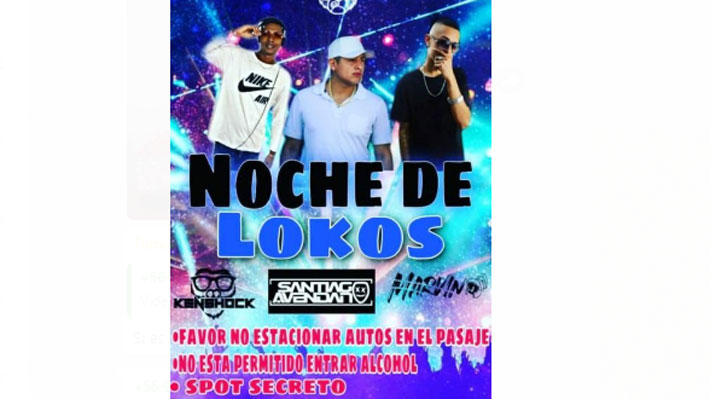 El evento había sido promocionado en redes sociales con el nombre de "Noche de Lokos" y en su afiche se solicitaba "no estacionar autos en el pasaje", "no está permitido entrar alcohol", además de dejar en claro que era un "spot secreto".