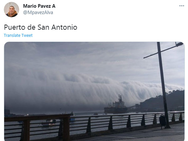 Se trató de un extraño fenómeno atmosférico que fue visible durante la tarde, una masa blanca de gran tamaño, baja y horizontal, que a simple vista parecía un tsunami. Pese a su apariencia atemorizante, se trata de varias nubes "inofensivas", según explica a Emol el meteorólogo Arnaldo Zúñiga, miembro de la Dirección Meteorológica de Chile.