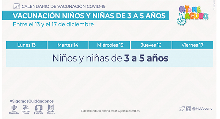 El Ministerio de Salud (Minsal) difundió el calendario de vacunación para esta semana, donde se continuará aplicando la dosis de refuerzo y vacunando a niños de entre 3 y 5 años.