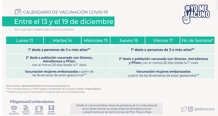 Según el cronograma, entre el lunes 13 y el viernes 19 de diciembre se aplicará primera dosis a los niños desde los 3 años que aún no se han inmunizado.