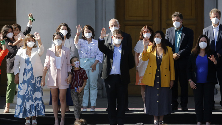 Después de presentarlos a todos, el líder de Apruebo Dignidad ofreció un discurso en que les definió algunos parámetros a sus ministros y ministras, y el que comenzó con enviar sus condolencias a la familia de Leonor Oyarzún, ex Primera Dama del ex Presidente Patricio Aylwin, quien falleció esta mañana.
