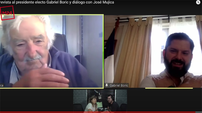 Mujica también aseguró que le gustaría poder estar en Chile abrazando a Boric, sin embargo, "yo lamento la pandemia". "Tengo 86 casi 87 años, me agarra un viento y me pela, esto no tiene piedad. Me encanta la política, pero más me encanta la vida, pero estaré siempre para un consejo, para ayudarte".