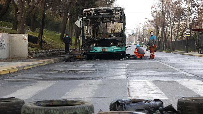 Posteriormente, "en una acción muy rápida estos antisociales se desplazan por avenida Grecia hasta avenida Tobalaba, donde realizan la misma acción e inician combustión a dos buses de la locomoción colectiva", agregó el capitán.