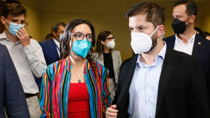 El jefe de Estado electo junto a la aún diputada Vallejo durante esta mañana en Valparaíso.