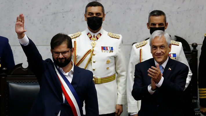 Con gestos de emoción, saludando a los presentes, sin corbata y con un traje de color azul oscuro, Boric se transformó en el Jefe de Estado número 34 en la historia republicana de Chile a las 12.29 horas del 11 de marzo de 2022. Luego de 5.844 días, Chile tendrá un Jefe de Estado que no será Michelle Bachelet o Sebastián Piñera.