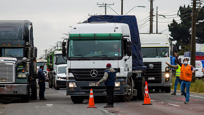 transportistas movilizados en la macrozona sur, en medio de las conversaciones que se están llevando a cabo para destrabar el conflicto.