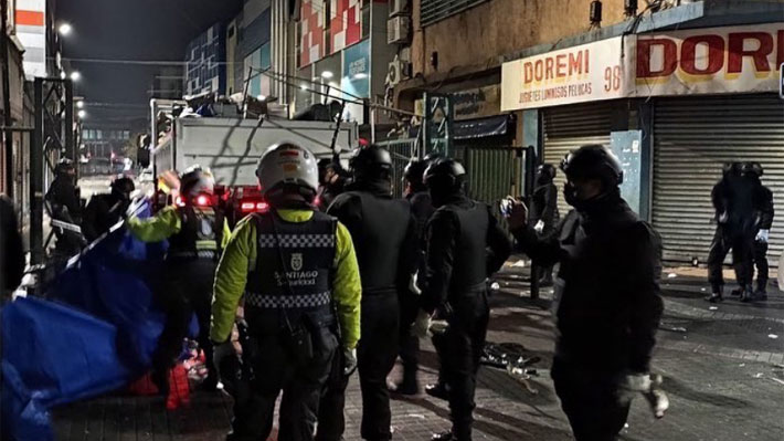 Por segundo día seguido, la madrugada de este sábado se realizó un operativo conjunto entre Carabineros y la Municipalidad de Santiago para desalojar los puestos del comercio ambulante en el barrio Meiggs.