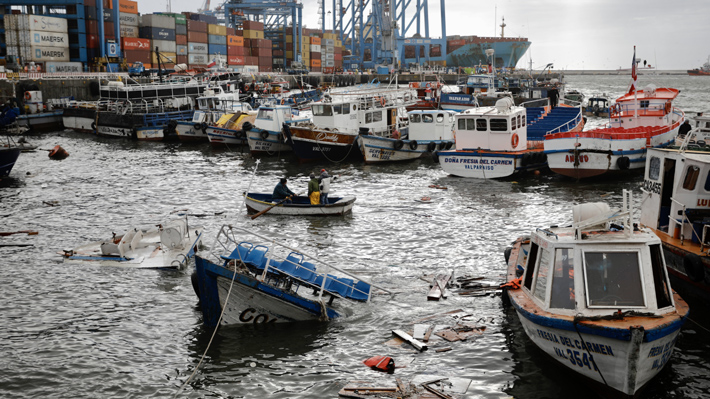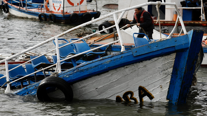 El fuerte oleaje que se registra desde la noche del miércoles en la costa de Valparaíso, debido a un sistema frontal, provocó el hundimiento de al menos cuatro embarcaciones en el muelle Prat.