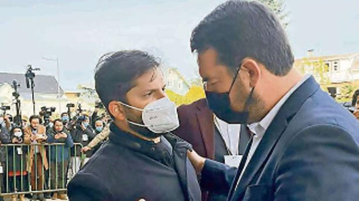 gobernador de La Araucanía, Luciano Rivas, aprovechó para conversar con el Presidente Gabriel Boric.