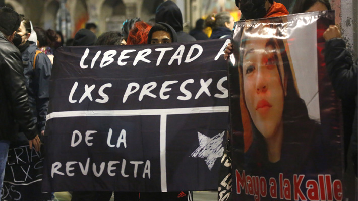 Manifestaciones para la liberación de los "presos del estallido social" en la plaza Baquedano el 12 de agosto de 2022.