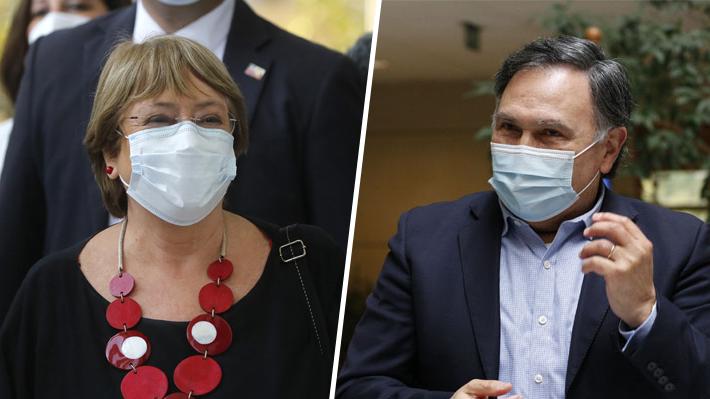 Ex presidenta Michelle Bachelet y el diputado RN Miguel Mellado.