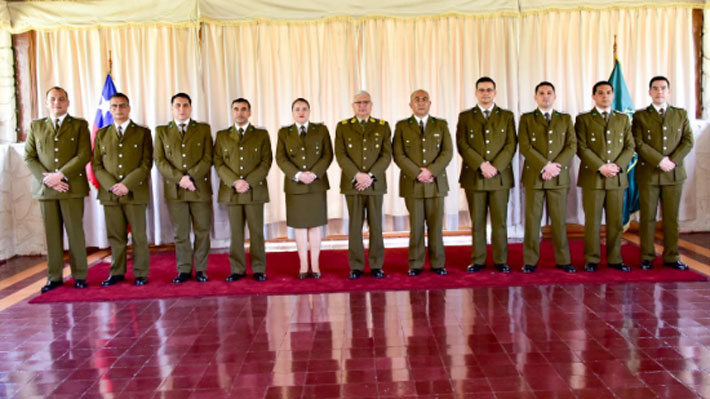 El General Director, Ricardo Yáñez, invistió a diez uniformados con los grados de cabo, sargento y suboficial como nuevos oficiales del escalafón de Justicia, en una ceremonia de reconocimiento al mérito, sacrificio y esfuerzo del personal que concilió su quehacer policial con estudios de Derecho.