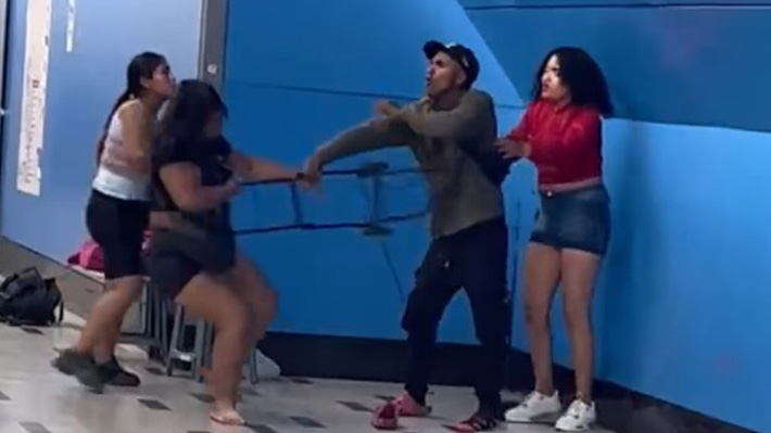 Según el registro -de 26 segundos de duración-, al menos tres personas participaron de la pelea en el pasillo de combinación de la Línea 3 hacía la Línea 1, en donde una de las mujeres lanza, en reiteradas oportunidades, un objeto contundentes en contra de otra. Así, también se ve a un hombre forcejeando con una de las involucradas en de la riña.