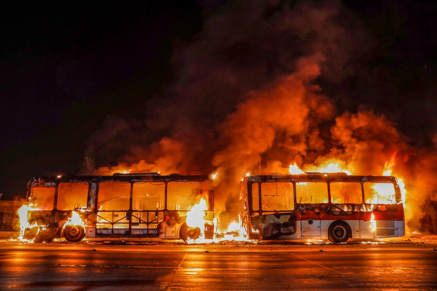 Tras ello, "personal de Carabineros junto a Bomberos se trasladaron al lugar logrando controlar el siniestro. Como resultado de esto, terminaron dos buses totalmente siniestrados y un tercero que alcanzó a salir de lugar con daños menores".
