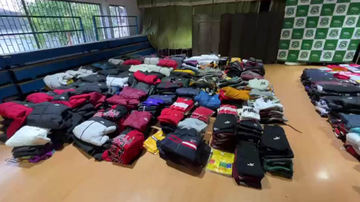 La imagen muestra prendas decomisadas por los funcionarios policiales.