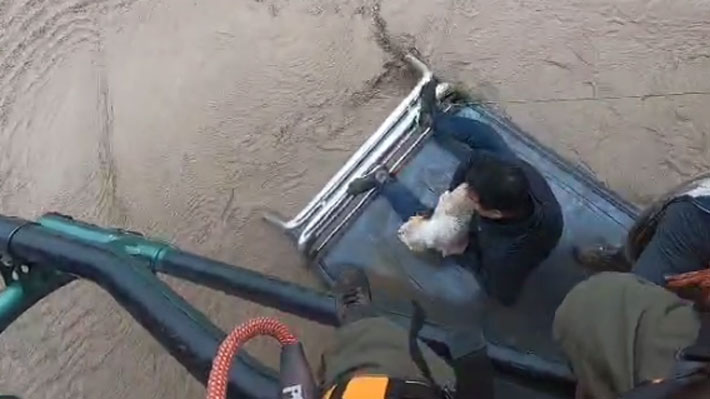 Fueron 30 las familias las rescatadas, y estos dos hombres opusieron resistencia en primera instancia, quedando atrapados. Luego fueron rescatados, junto a un perro.