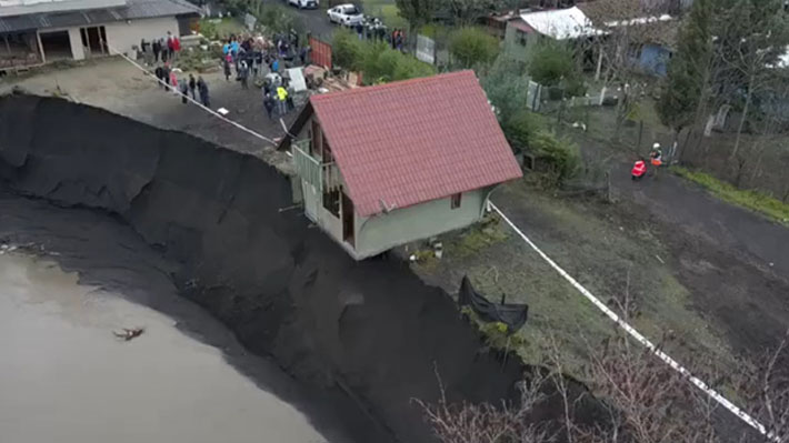 Ha sido una de las imágenes del fuerte sistema frontal que afectó al país durante la semana pasada. Una casa que corría el riesgo de ser derrumbada por un socavón generado tras el aumento fluvial del río Laja en Yumbel, región del Biobío.