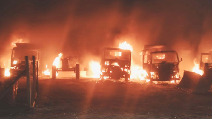 Alto Biobío, donde desconocidos quemaron diez camiones.