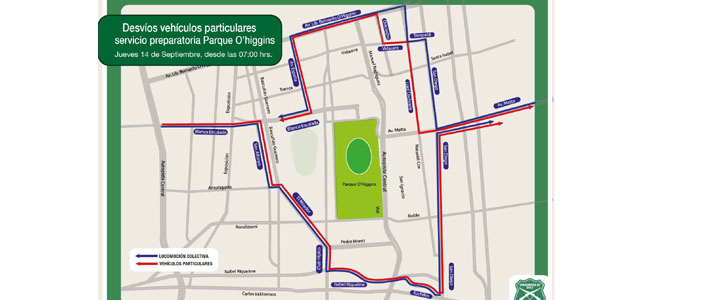 Producto de la preparatoria de la Parada Militar 2023, este jueves 14 de septiembre en el Parque O’Higgins, se realizarán desvíos de tránsito desde las 07.00 horas.