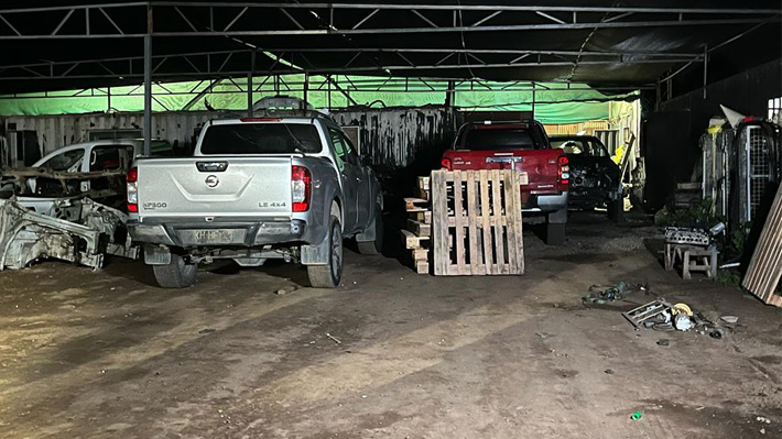 Carabineros encontró al menos seis vehículos robados, otros ya desarmados y siete con patentes falsas, que estaban ocultos en una parcela de la comuna d