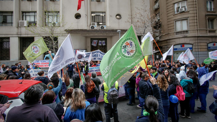 Trabajadores de la Salud protestando frente al Ministerio de Salud.
