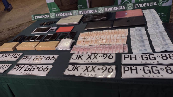 Además, de la droga incautada en el operativo policial, se decomisó "armas de fuego, munición, dinero en efectivo, como también documentación relacionada a vehículos que mantienen en cargo vigente por robo, además de contratos ideológicamente falsos y contratación de seguros automotrices".