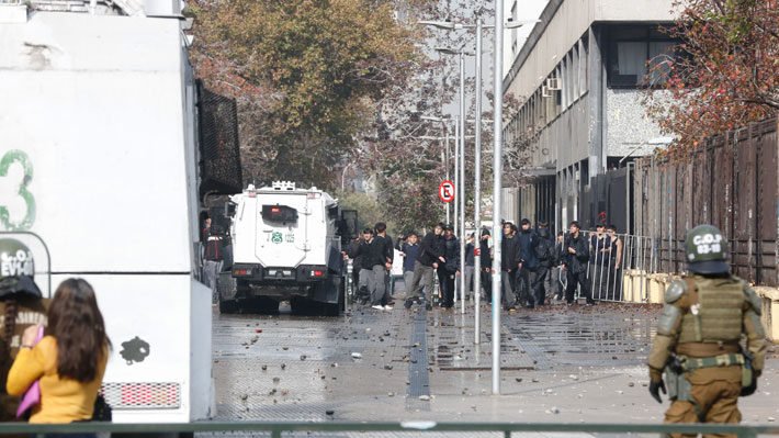 Este miércoles se están registrando nuevamente incidentes en el Instituto Nacional, en la comuna de Santiago. Producto de esto hay dos detenidos.
