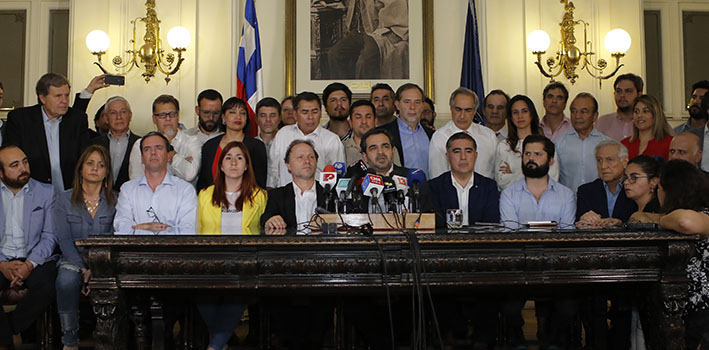 Después de dos días de intensas negociaciones, las principales fuerzas políticas de Chile logran un histórico acuerdo que responde a las demandas surgidas en las masivas protestas del "Estallido Social" en pleno gobierno de Sebastián Piñera. Este acuerdo establece un proceso para redactar una nueva Constitución que reemplace la heredada de la dictadura y modificada en 2005 por el Gobierno de Ricardo Lagos. La ciudadanía tendrá un papel fundamental en este proceso, ya que se programó un Plebiscito para abril de 2020, en el cual se decidirá si es necesario modificar la Constitución y qué tipo de órgano la redactará. Este acuerdo representa un avance hacia un "verdadero contrato social" y una Constitución "ciento por ciento democrática".