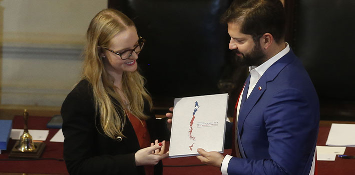 El Presidente Gabriel Boric recibe solemnemente la propuesta de una nueva Constitución elaborada por la Convención Constitucional de Chile. En un emotivo acto en el Congreso Nacional de Santiago, Boric hace un llamado a la unidad del país, resaltando la necesidad de un debate respetuoso y de altura de miras sobre el contenido de esta nueva carta magna. La propuesta constitucional representa un cambio significativo en la estructura y valores del país, con reconocimiento a los pueblos indígenas, una transformación en el sistema legislativo, y un énfasis en los derechos sociales y la justicia.