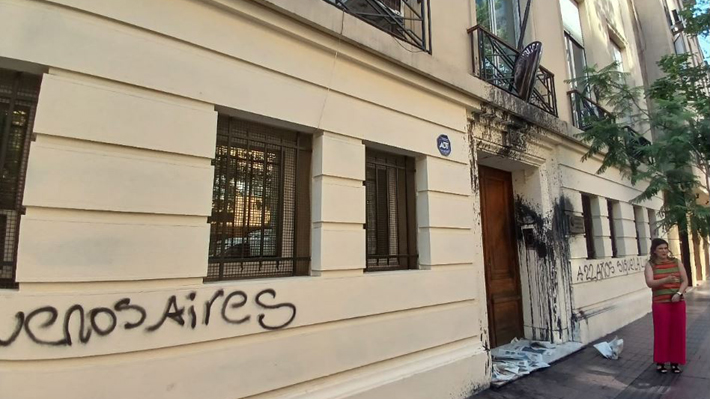 Ataque con pintura y rayados a la Embajada de Argentina en Chile.