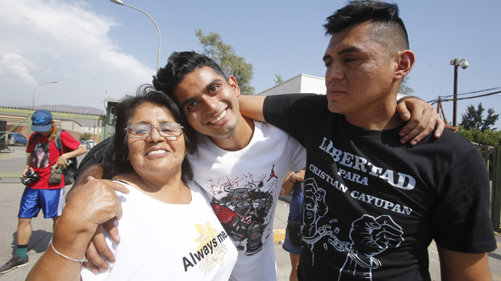 Cristian Cayupan y Matias Rojas tras ser indultados por el Presidente Boric.