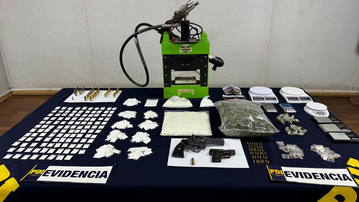 En detalle, a los detenidos —mayores de edad, chilenos y algunos de los con antecedentes policiales— se les incautó 4.983,85 gramos de cocaína base, 728,46 gramos de marihuana, 392,22 gramos de clorhidrato de cocaína, 934 comprimidos de clonazepam, una ampolla de fentanilo, una ampolla de metadona; dos pistolas a fogueo modificadas, tres partes de un arma de fuego y casi un centenar de proyectiles.