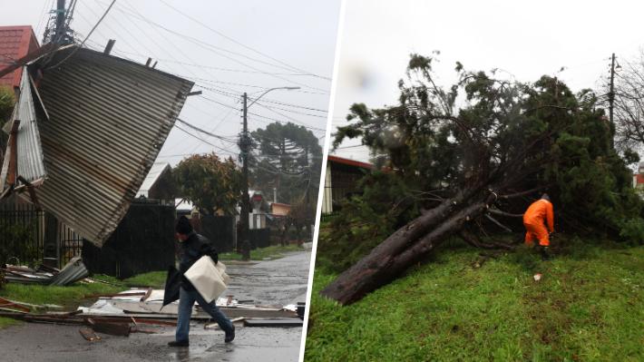 En específico, en las regiones afectadas, entre el Ñuble y Aysén, se han registrado fuertes precipitaciones acompañadas de ráfagas de viento que han generado la caída de árboles en la vía y sobre el tendido eléctrico, la voladura de techumbres, además de la interrupción del suministro eléctrico.
