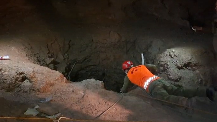Personal de Carabineros, del GOPE, bajó por el pique hasta llegar donde estaba el menor que se encontraba consciente. Luego, lo estabilizaron y empezaron la extracción.